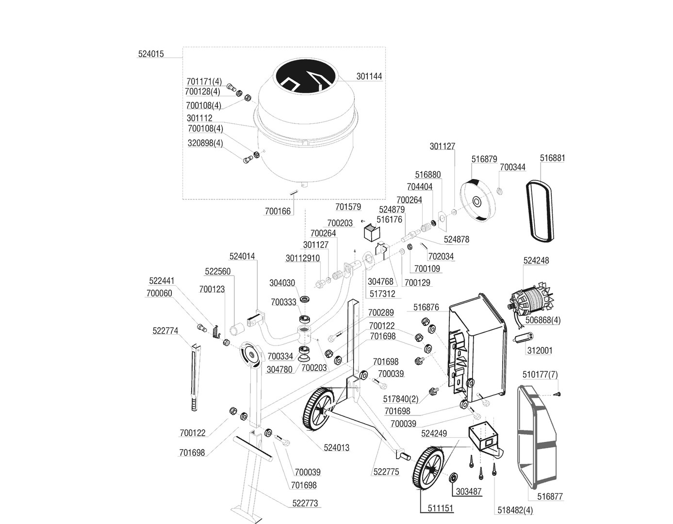 Zeichnungen von AL-KO Betonmörtelmaschinen TOP 1201 mit der Geräte-Artikelnr. 117111: