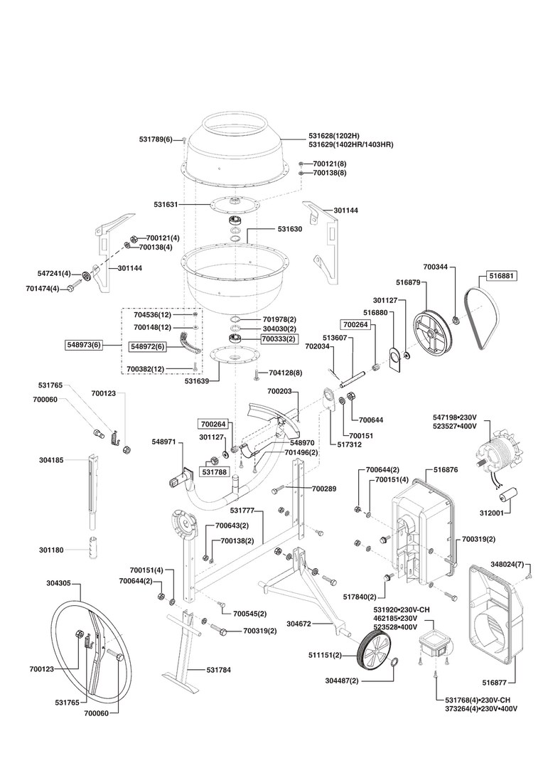 Zeichnungen von AL-KO Betonmörtelmaschinen TOP 1403 HR mit der Geräte-Artikelnr. 112401: