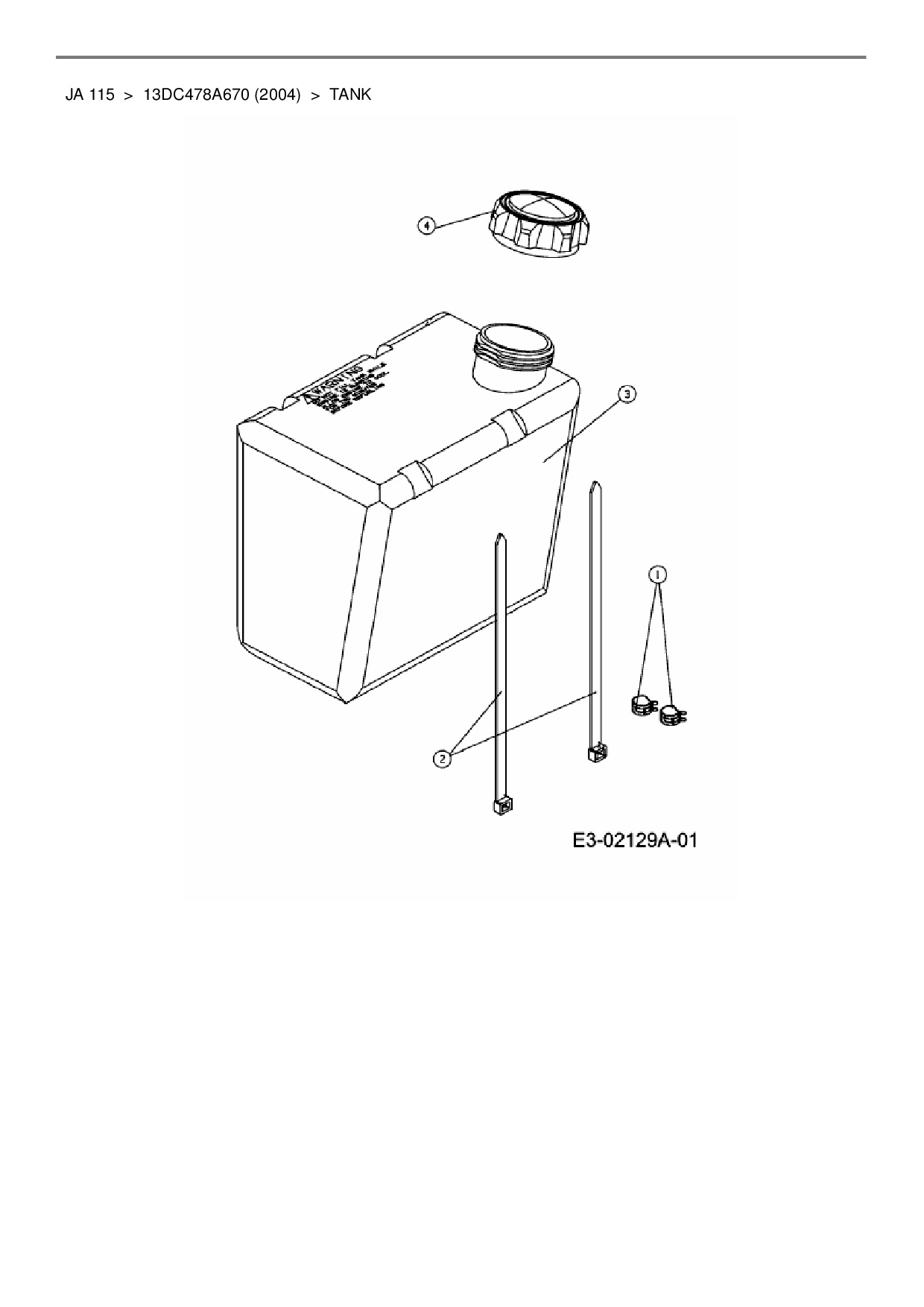 Ersatzteile für Rasentraktor MTD JA 115 aus der Zeichnung Tank 1: