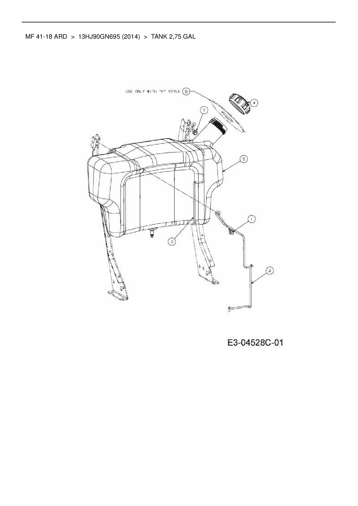 Ersatzteile für Rasentraktor Massey Ferguson MF 41-18 ARD aus der Zeichnung Tank 2,75 Gal:
