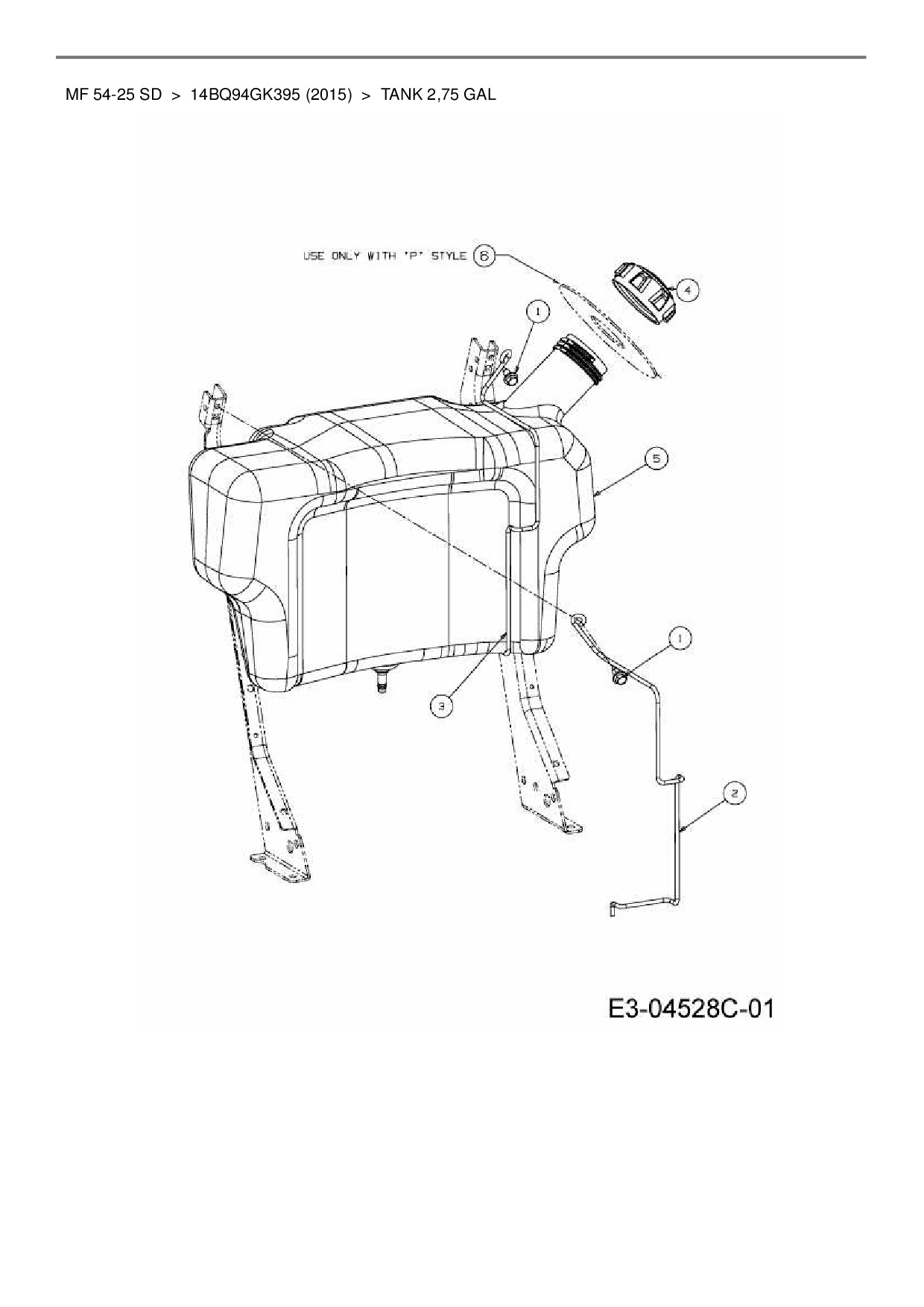 Ersatzteile für Gartentraktor Massey Ferguson MF 54-25 SD aus der Zeichnung Tank 2,75 Gal: