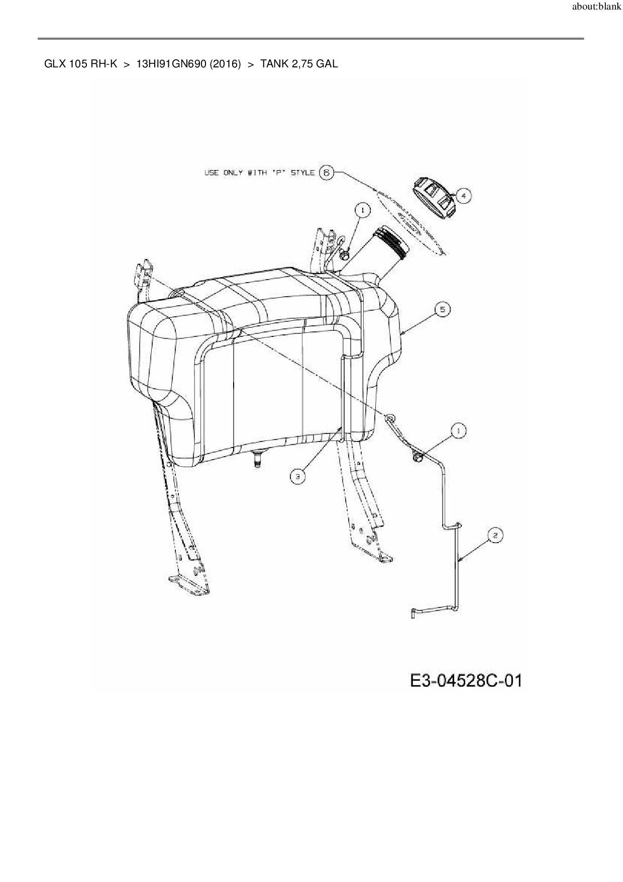Ersatzteile für Rasentraktor Gutbrod GLX 105 RH-K aus der Zeichnung Tank 2,75 Gal: