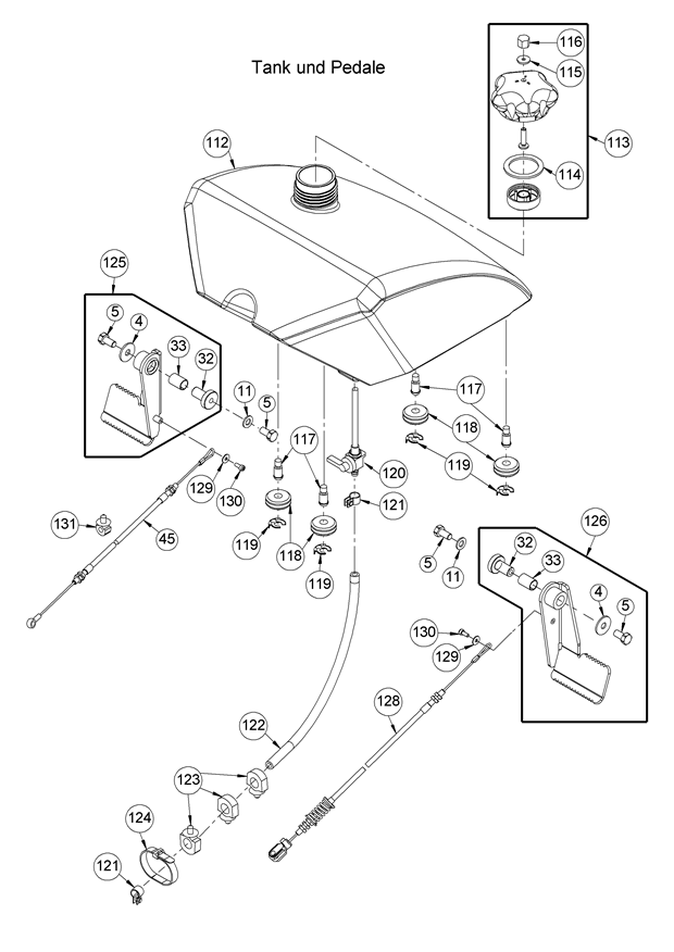 Tank und Pedale