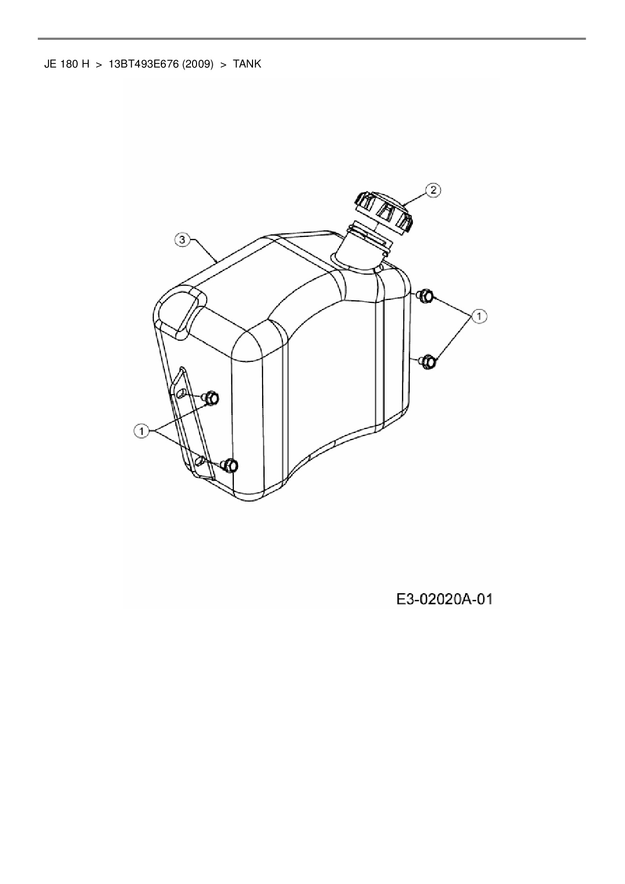 Ersatzteile für Rasentraktor MTD JE 180 H aus der Zeichnung Tank: