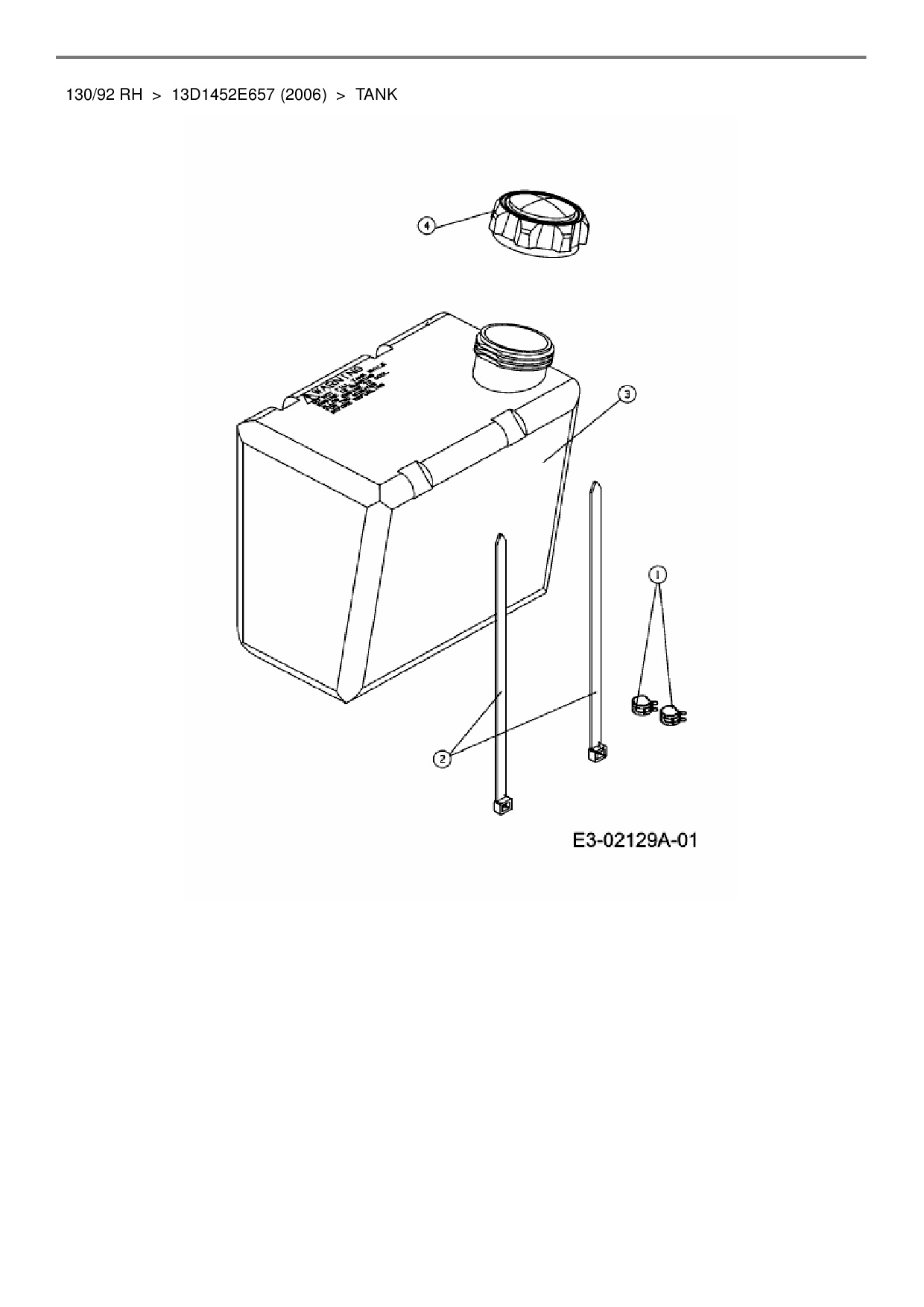 Ersatzteile für Rasentraktor Mastercut 130/92 RH aus der Zeichnung Tank: