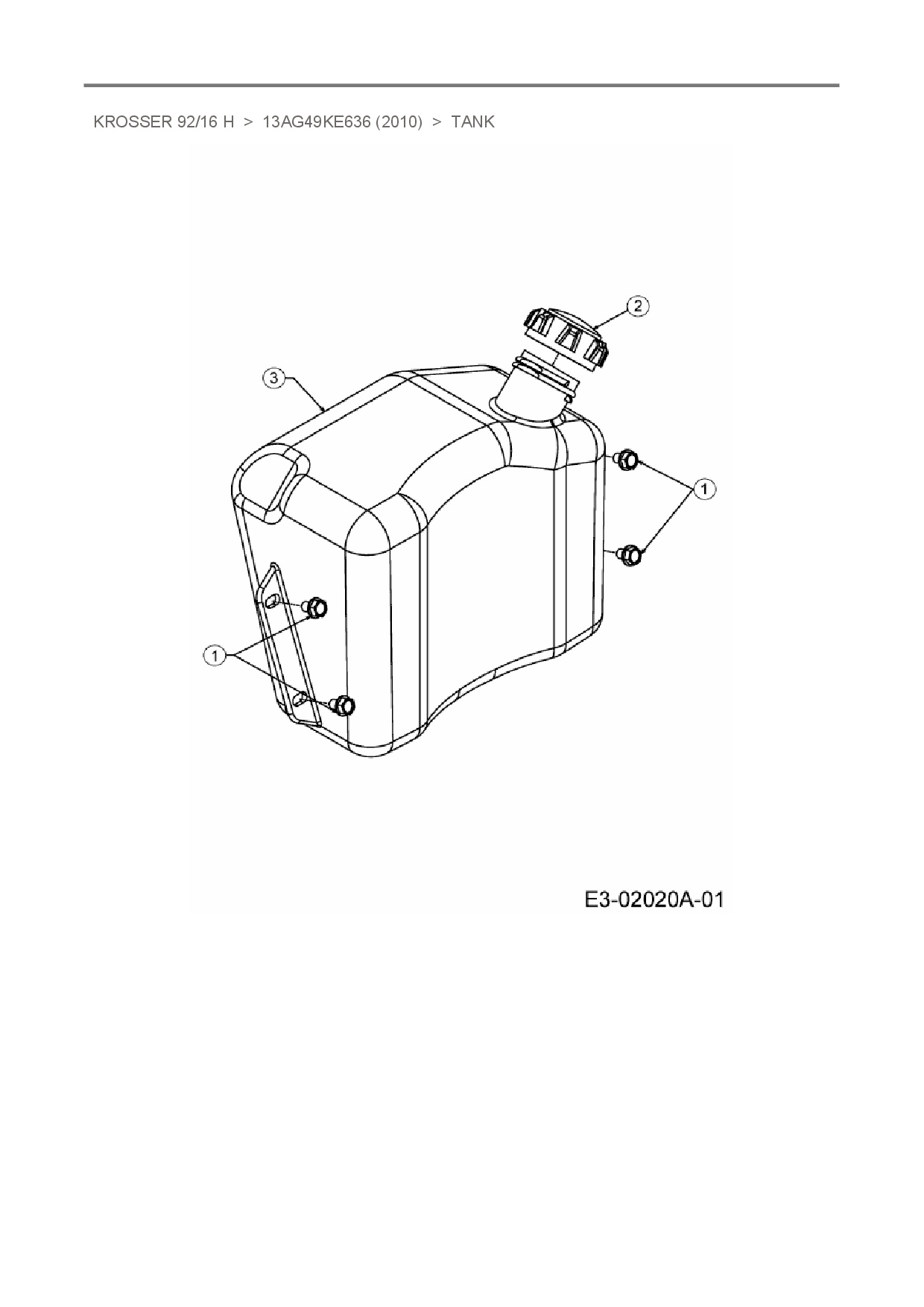 Ersatzteile für Rasentraktor Oleo-Mac Krosser 92/16 H aus der Zeichnung Tank: