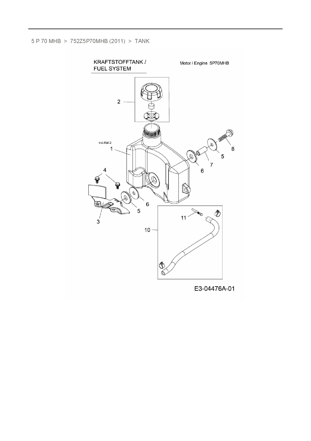 Download Ersatzteil-Zeichnung MTD-Motoren 5 P 70 MHB Zeichnung Tank (PDF-Format)