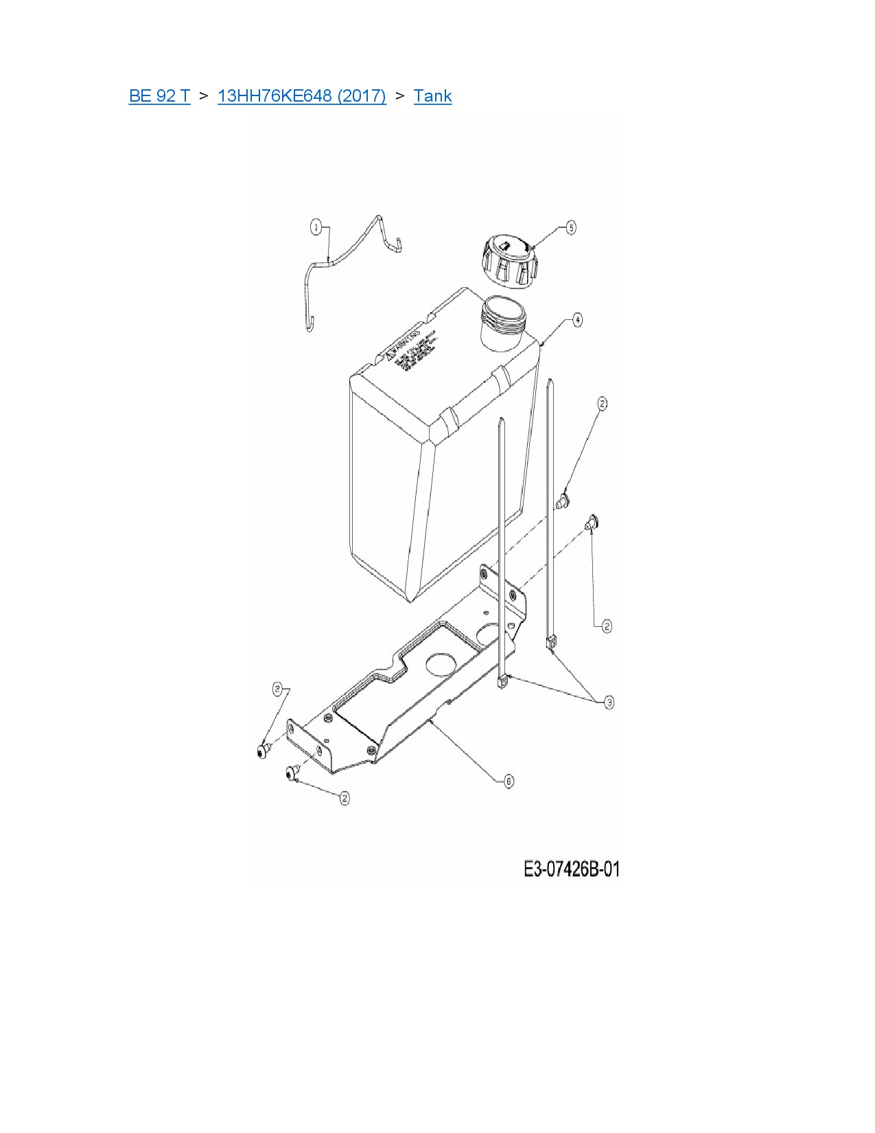Ersatzteile für Rasentraktor MTD BE 92 T aus der Zeichnung Tank: