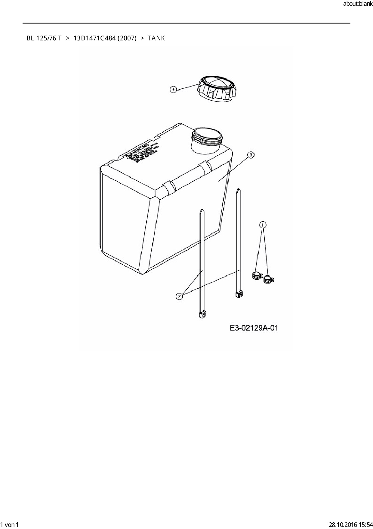Ersatzteile für Rasentraktor Bolens BL 125/76 T aus der Zeichnung Tank: