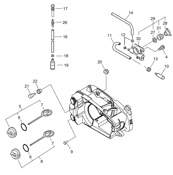 Zeichnung von ECHO Motorsägen CS-350TES CS-350TES ab S.-Nr.: 36066551 Tankgehäuse, Ölpumpe:
