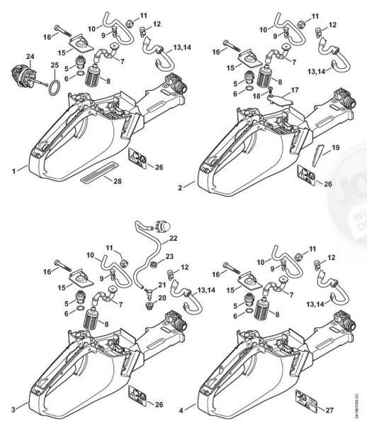 Hier finden Sie alle Ersatzteile von Stihl Benzin-Motorsägen MS 241 C-M der Zeichnungsgruppe Tankgehäuse: