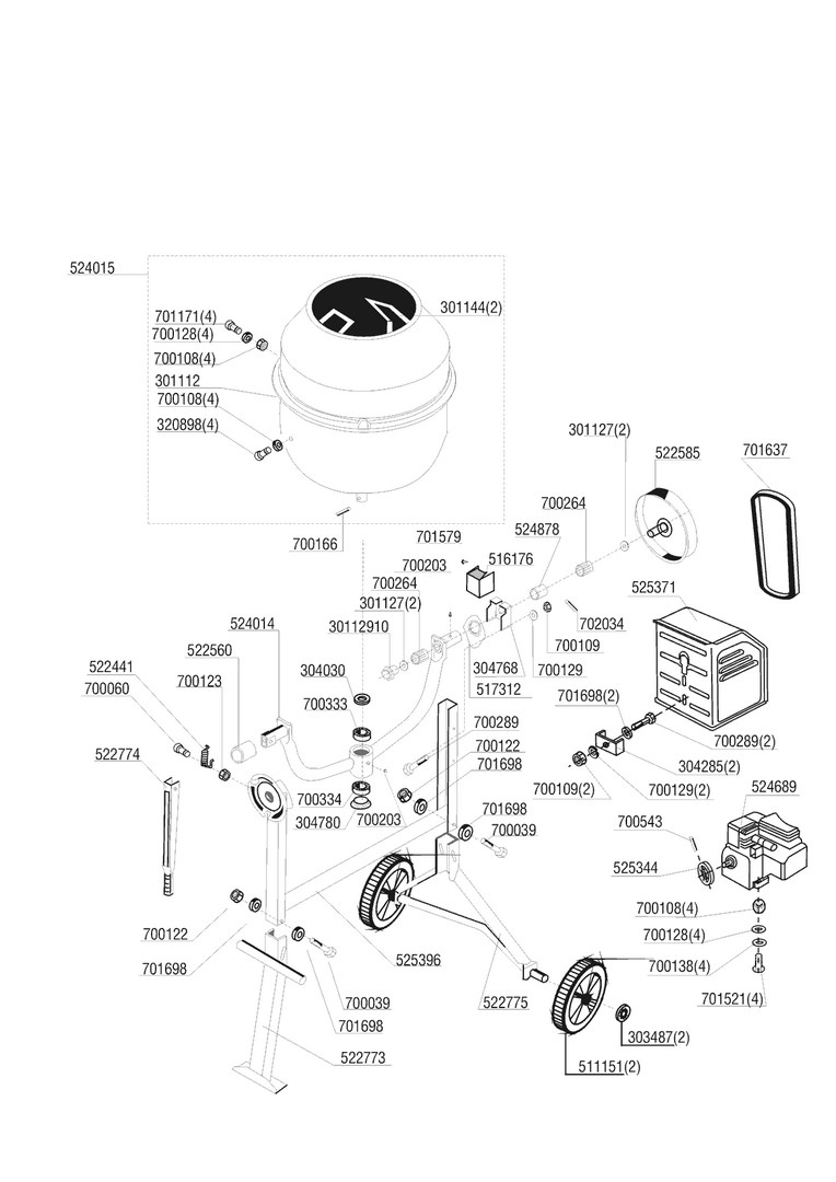Zeichnungen von AL-KO Betonmörtelmaschinen Top 1201 B mit der Geräte-Artikelnr. 117568: