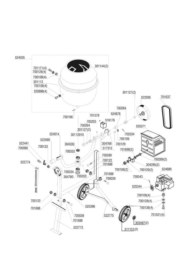 Zeichnungen von AL-KO Betonmörtelmaschinen Top 1401 B mit der Geräte-Artikelnr. 117569: