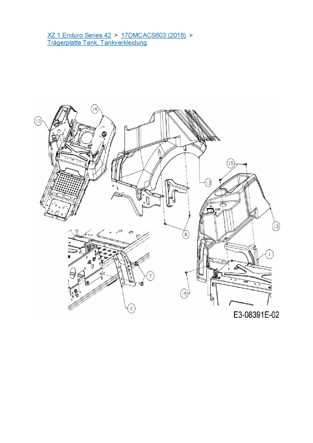 Ersatzteile für Zero Turn Cub Cadet XZ 1 Enduro Series 42 aus der Zeichnung Trägerplatte Tank, Tankverkleidung: