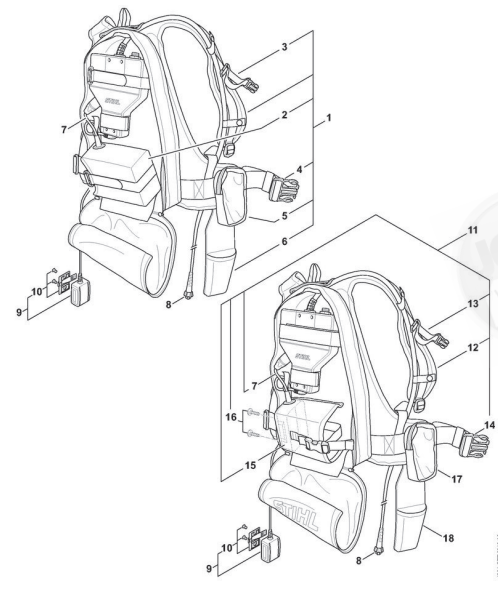 Hier finden Sie alle Ersatzteile von Stihl Akku-Geräte ASA 65 der Zeichnungsgruppe Tragsystem, Steuergerät: