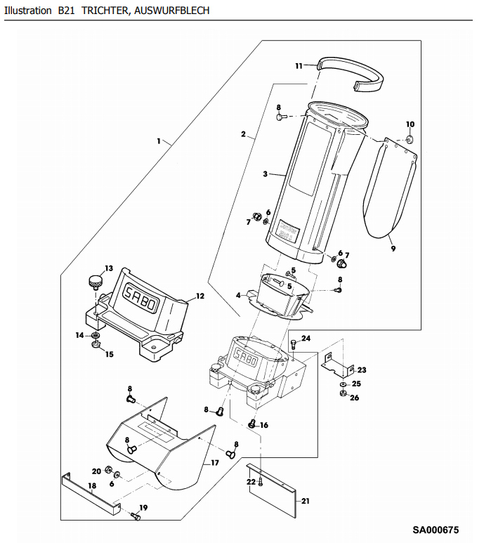 Zeichnung Sabo Häcksler COMSTAR 2000 S EDV-NR.SA477 Trichter, Auswurfblech: