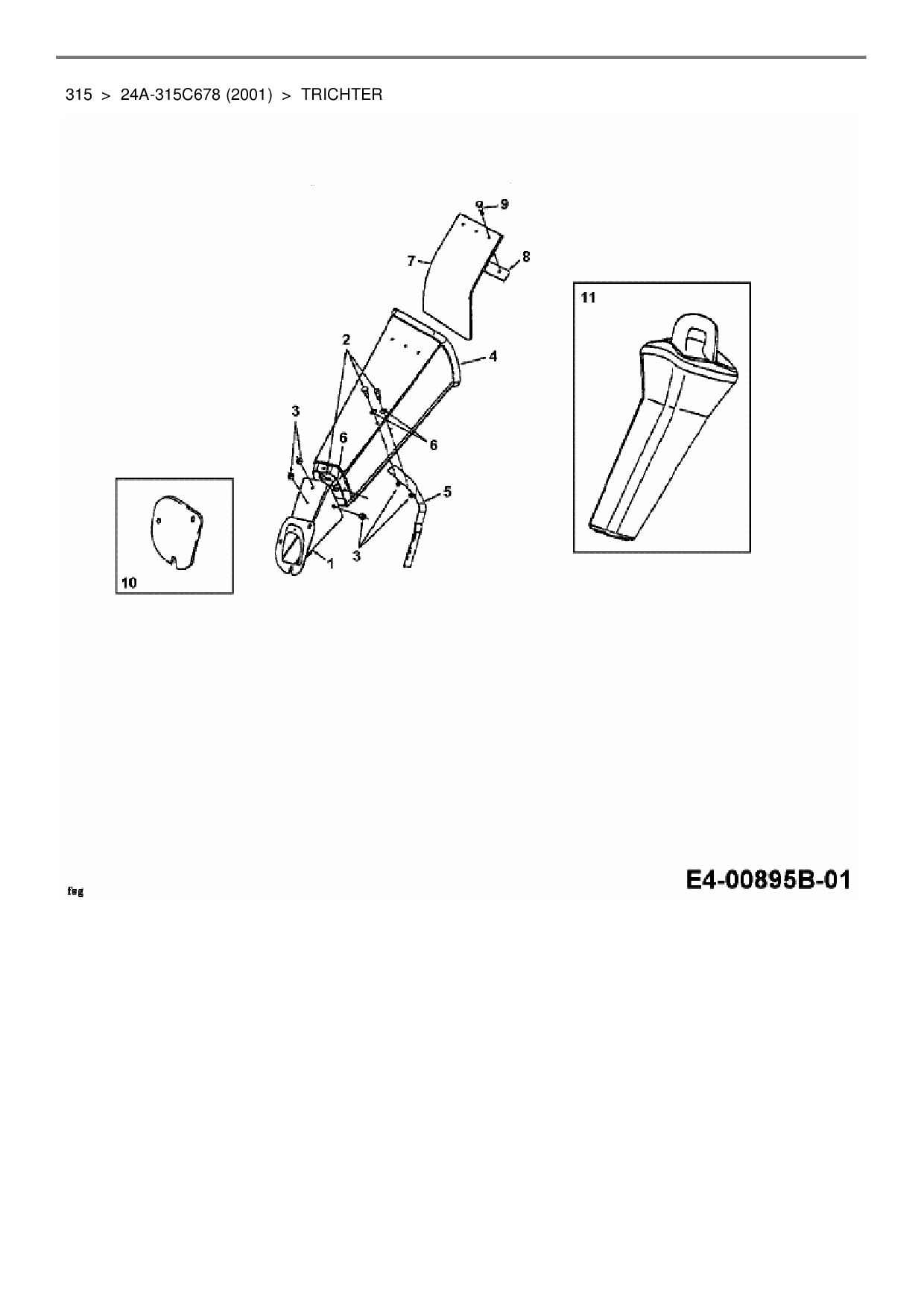 Ersatzteile für Häcksler MTD 315 aus der Zeichnung Trichter: