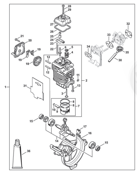Hier finden Sie alle Ersatzteile von Stihl Kombi- MultiSystem KM 100 der Zeichnungsgruppe Triebwerk 0 40 mm: