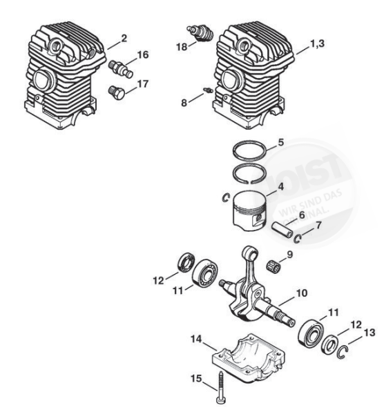 Hier finden Sie alle Ersatzteile von Stihl Benzin-Motorsägen MS 250 C-B der Zeichnungsgruppe Triebwerk: