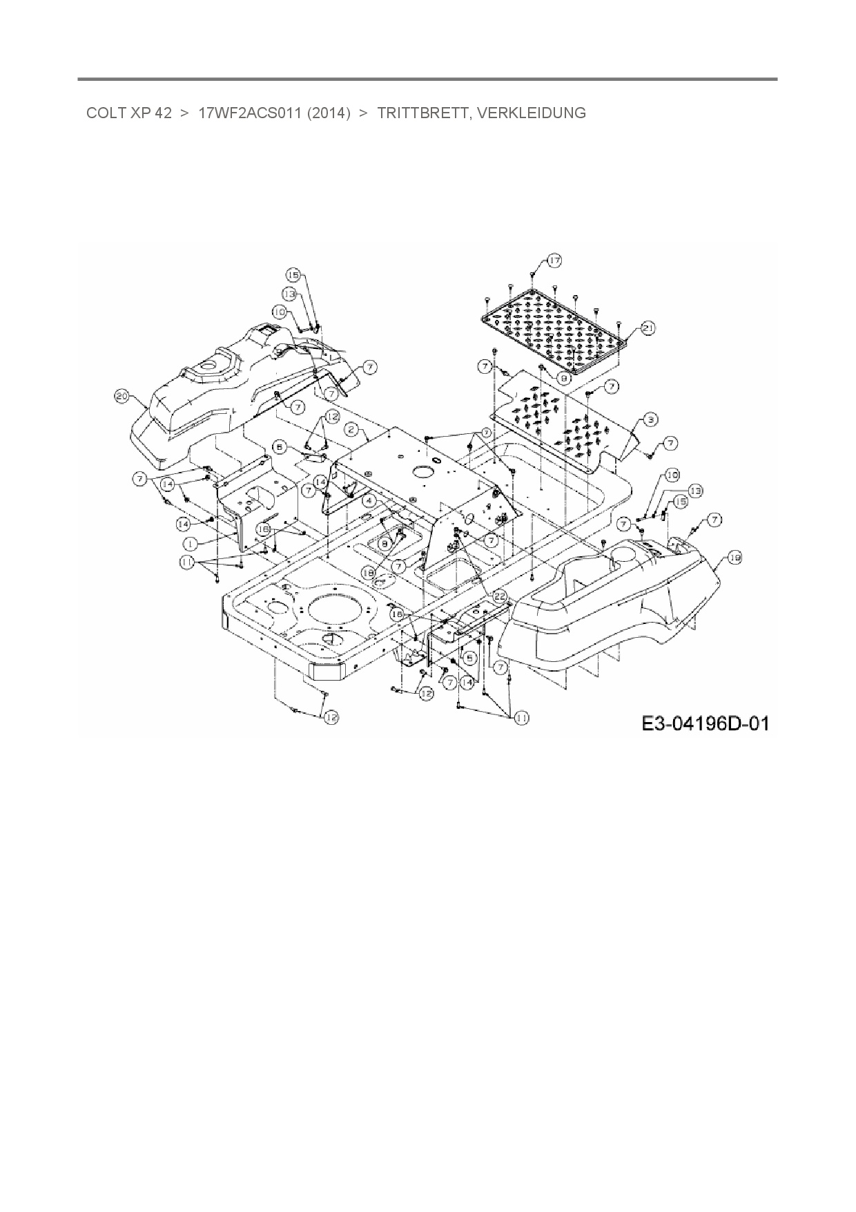 Ersatzteile für Zero Turn Troy-Bilt Colt XP 42 aus der Zeichnung Trittbrett, Verkleidung: