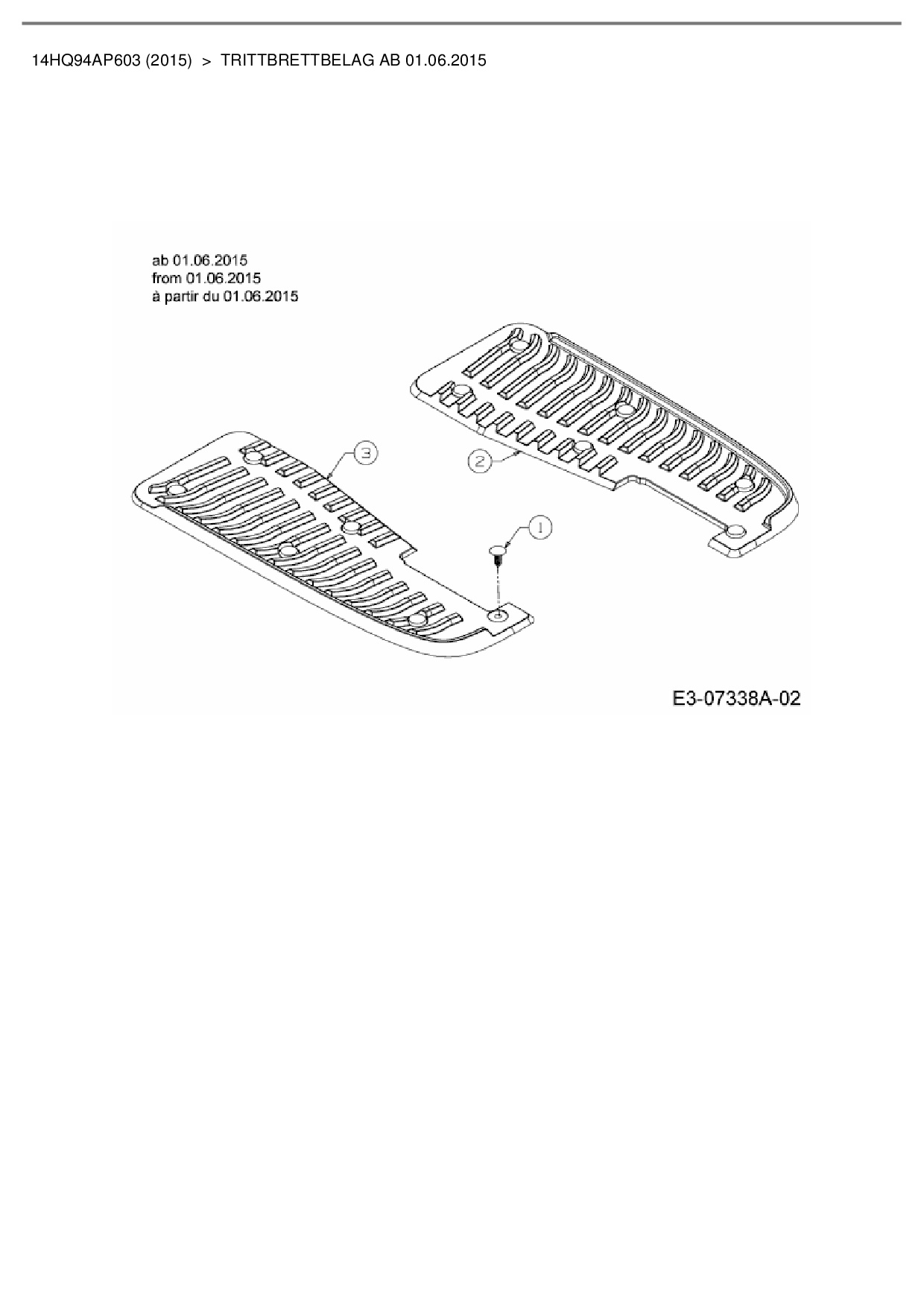 Ersatzteile für Gartentraktor Cub Cadet CC 1224 KHP aus der Zeichnung Trittbrettbelag ab 01.06.2015: