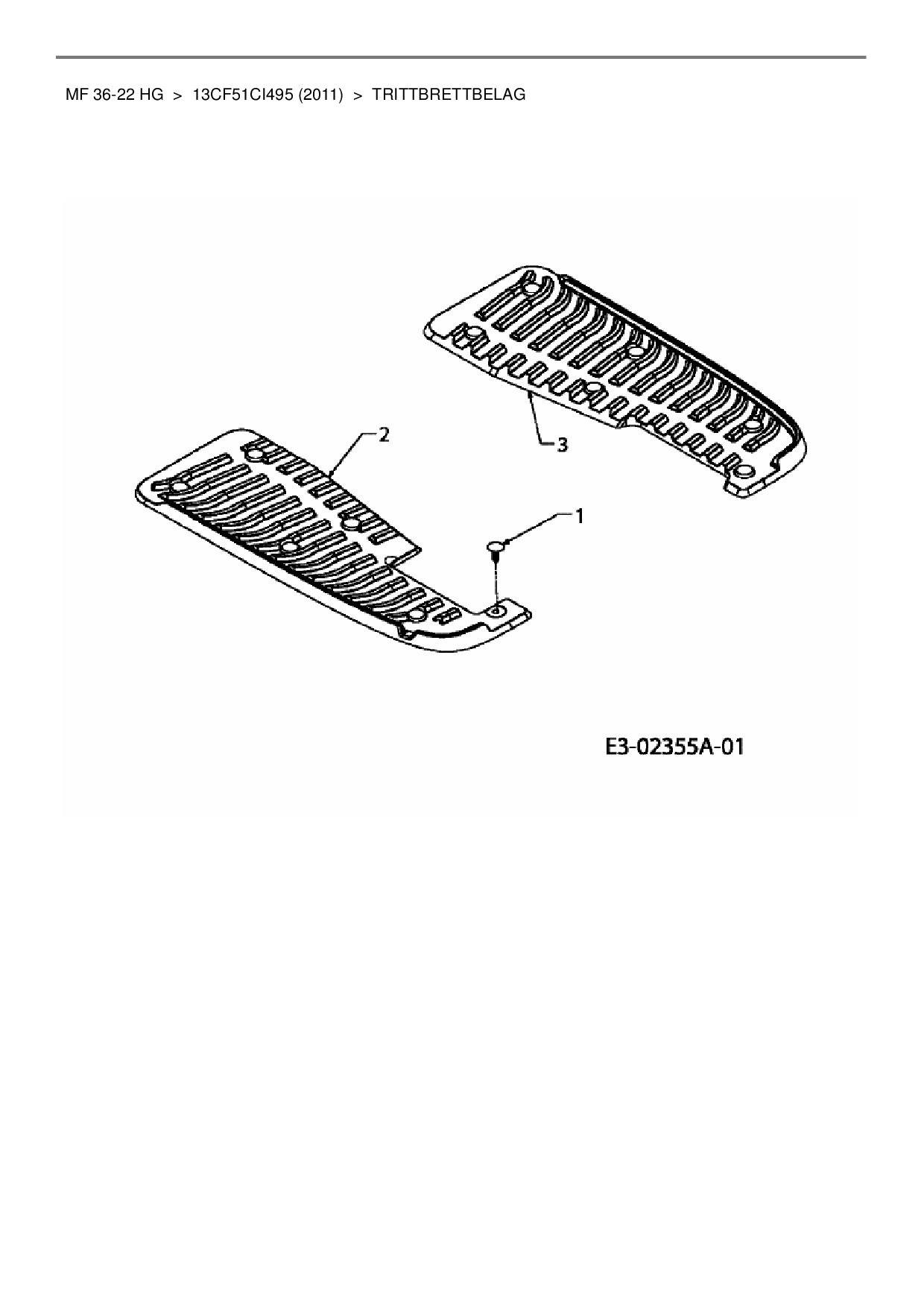 Ersatzteile für Rasentraktor Massey Ferguson MF 36-22 HG aus der Zeichnung Trittbrettbelag: