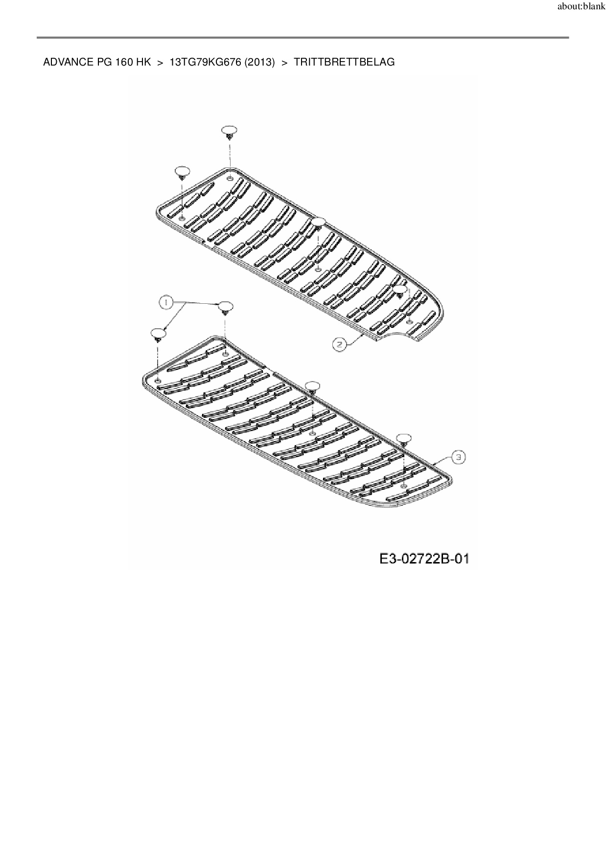 Ersatzteile für Rasentraktor MTD Advance PG 160 HK aus der Zeichnung Trittbrettbelag: