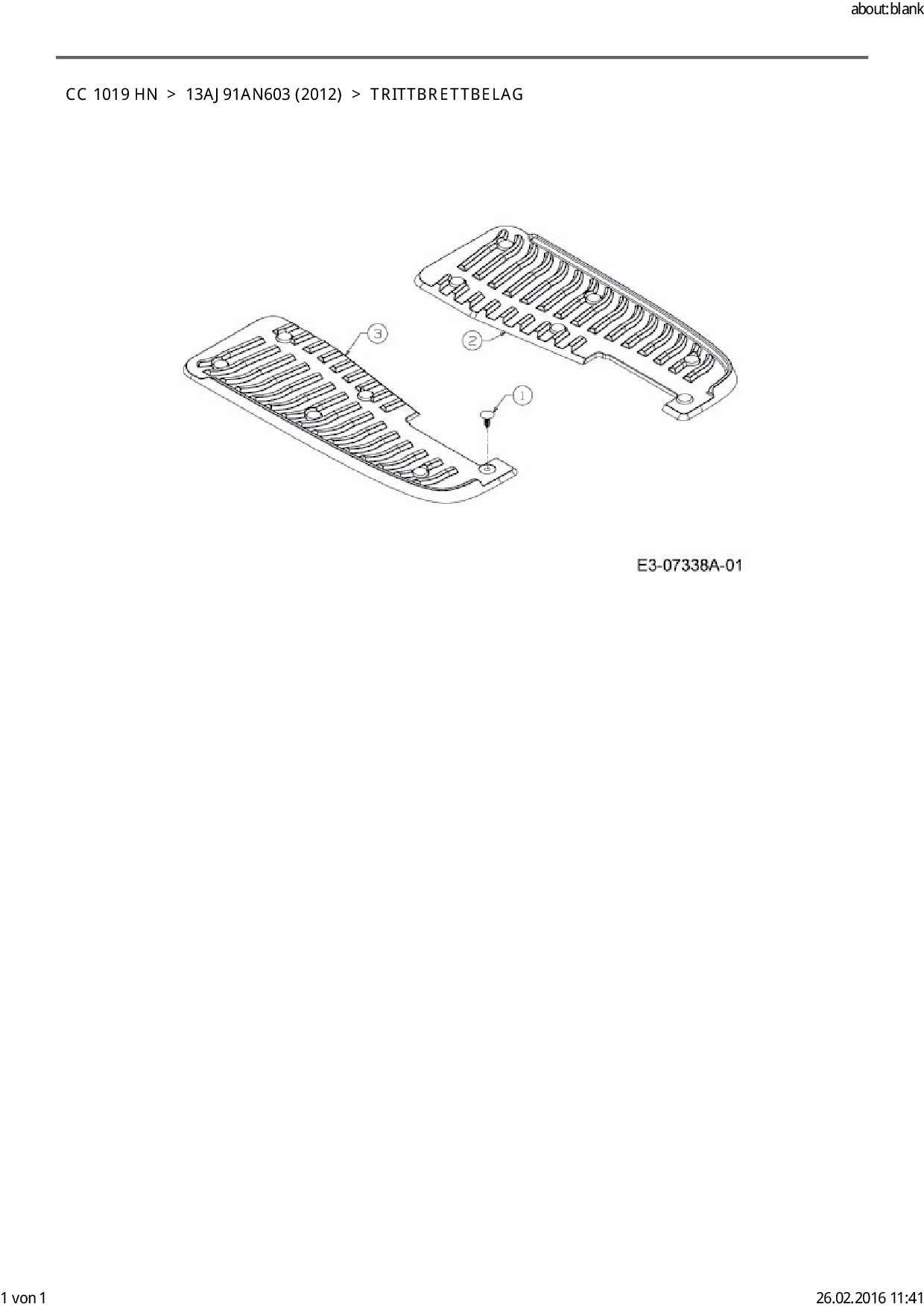 Ersatzteile für Rasentraktor Cub Cadet CC 1019 HN aus der Zeichnung Trittbrettbelag: