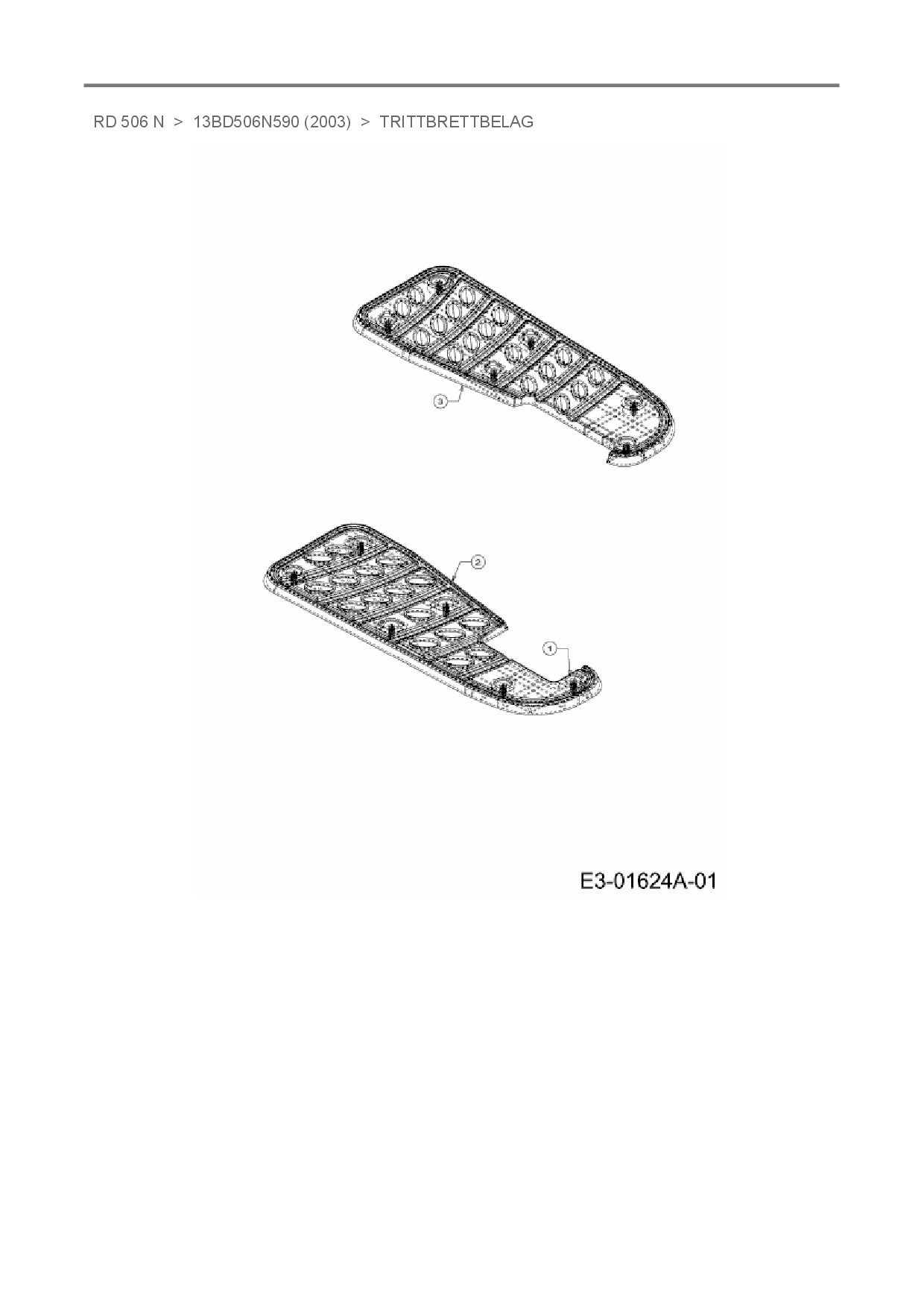 Ersatzteile für Rasentraktor White RD 506 N aus der Zeichnung Trittbrettbelag: