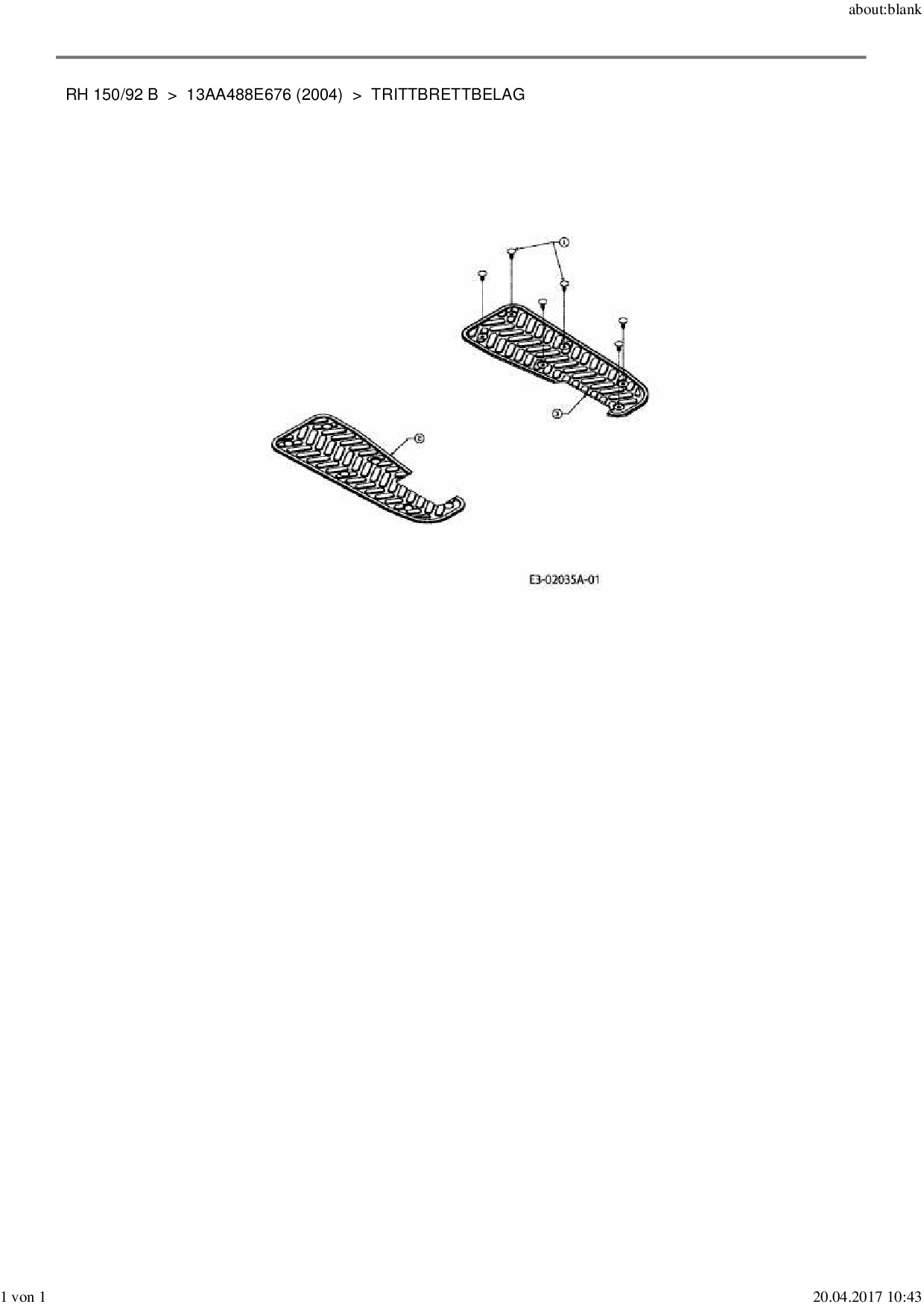 Ersatzteile für Rasentraktor MTD RH 150/92 B aus der Zeichnung Trittbrettbelag: