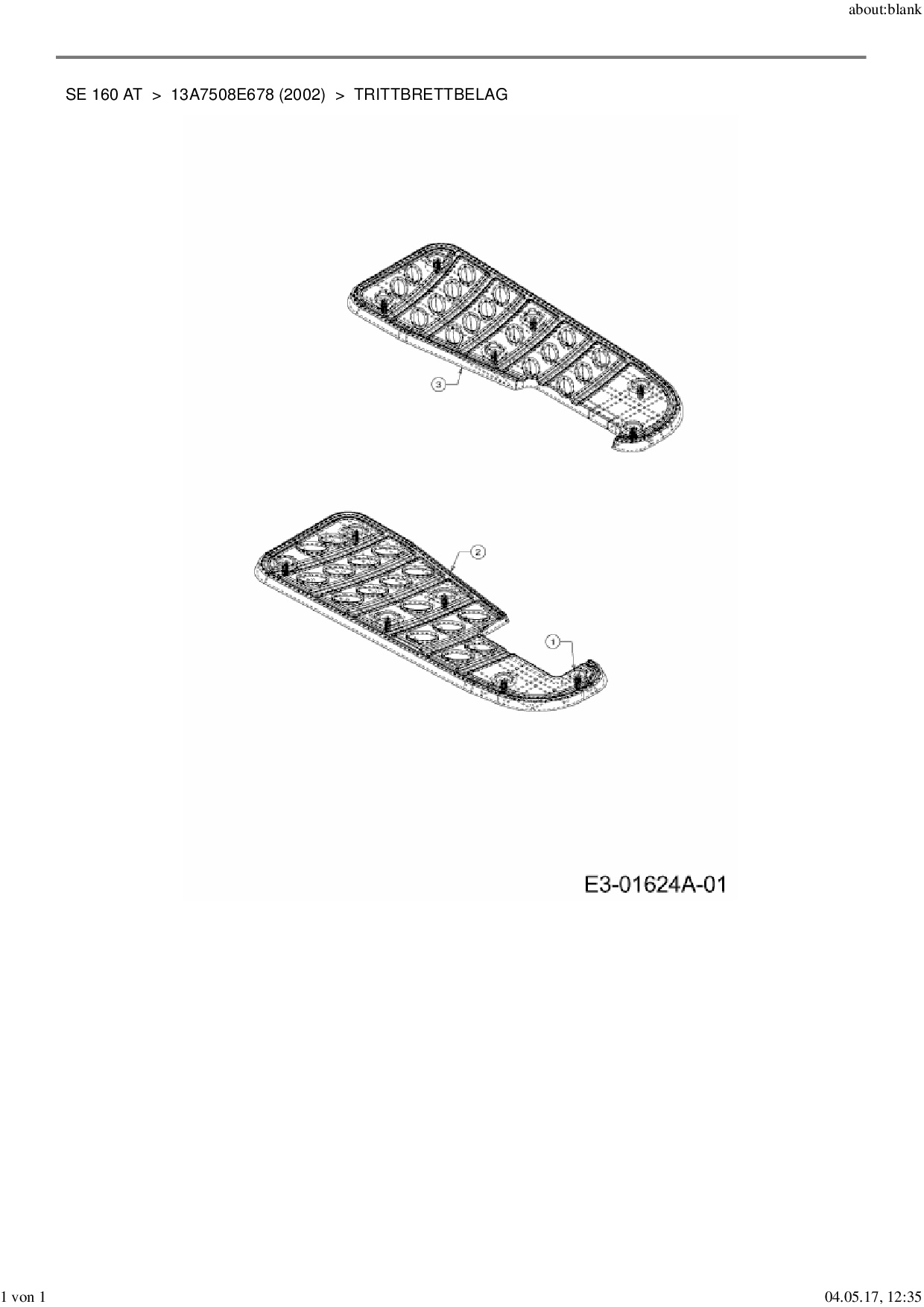 Ersatzteile für Rasentraktor MTD SE 160 AT aus der Zeichnung Trittbrettbelag: