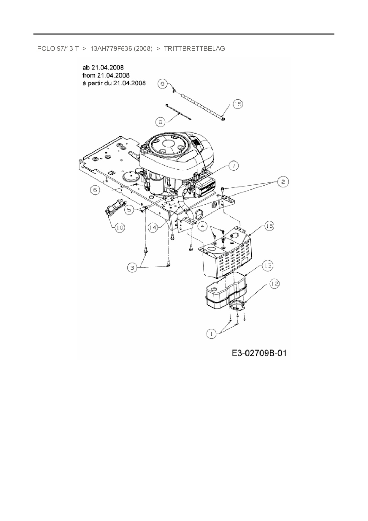 Ersatzteile für Rasentraktor Oleo-Mac Polo 97/13 T aus der Zeichnung Trittbrettbelag: