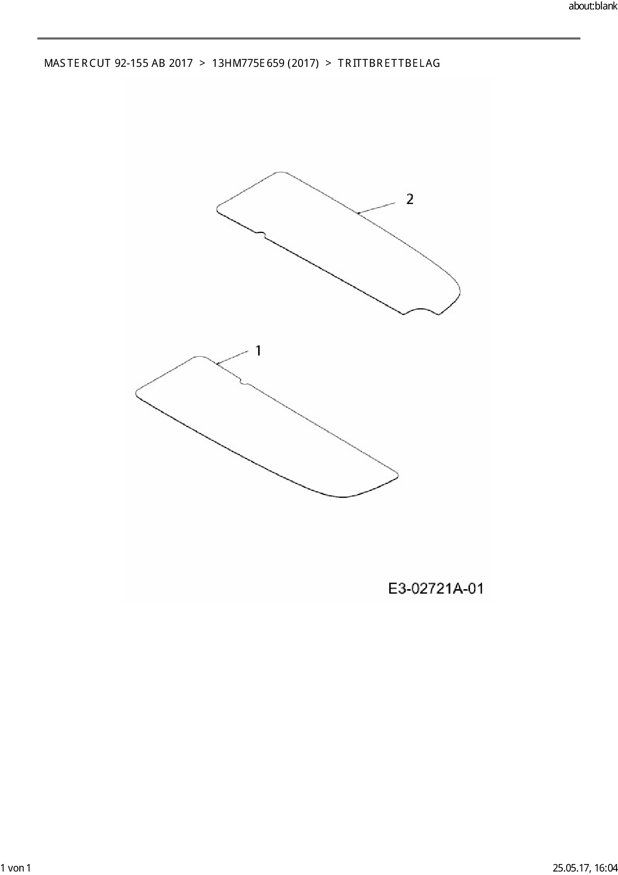 Ersatzteile für Rasentraktor Mastercut Mastercut 92-155 ab 2017 aus der Zeichnung Trittbrettbelag: