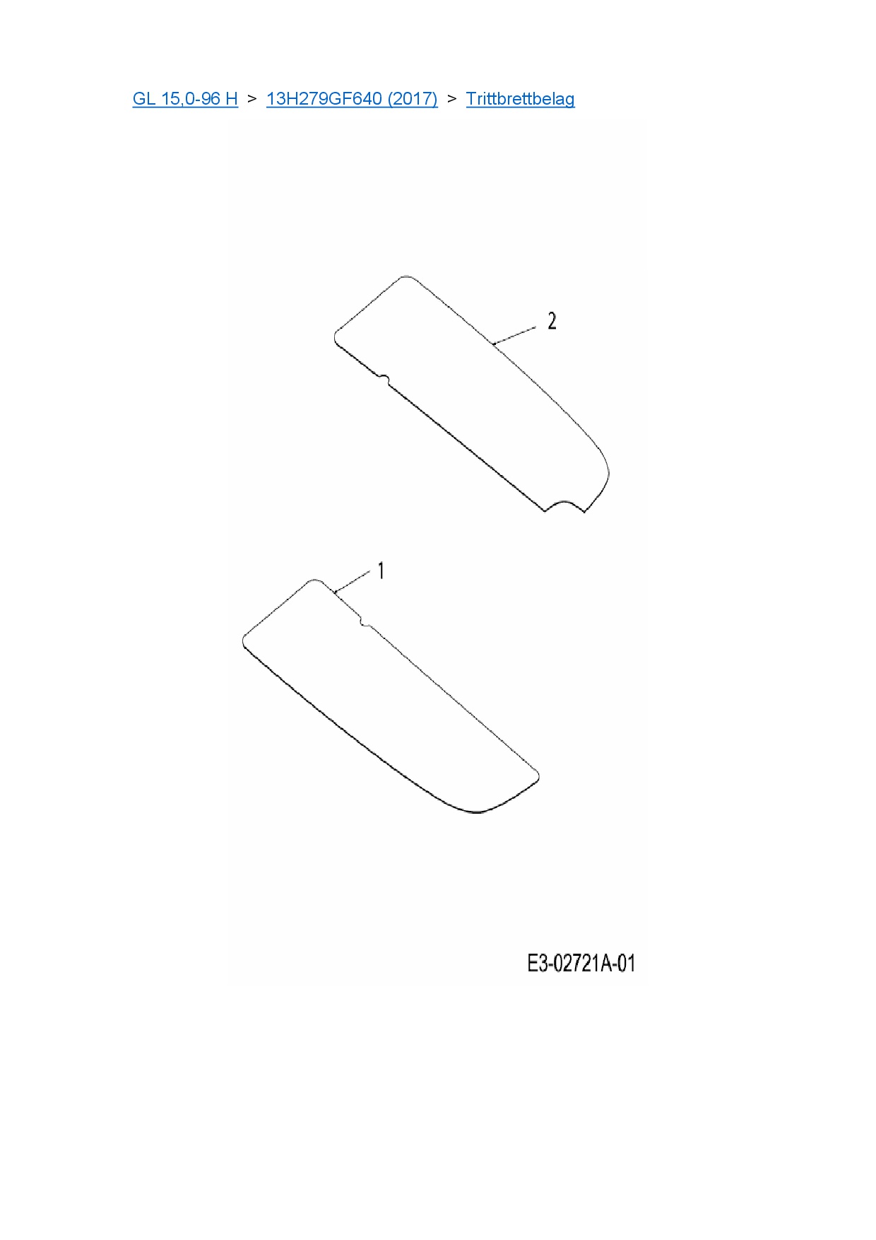 Ersatzteile für Rasentraktor Gartenland GL 15,0-96 H aus der Zeichnung Trittbrettbelag: