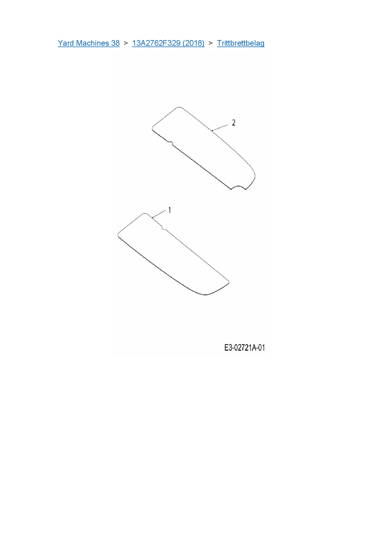 Ersatzteile für Rasentraktor MTD Yard Machines 38 aus der Zeichnung Trittbrettbelag: