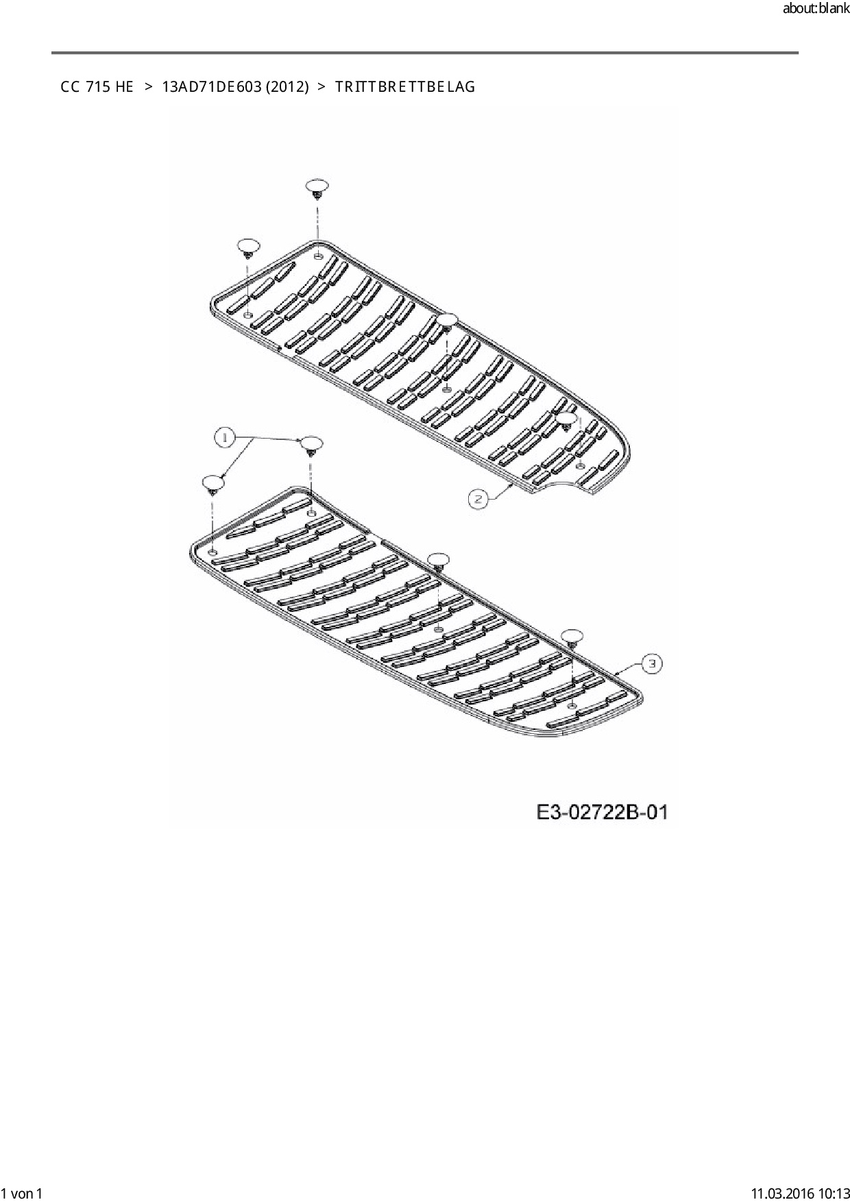 Ersatzteile für Rasentraktor Cub Cadet CC 715 HE aus der Zeichnung Trittbrettbelag: