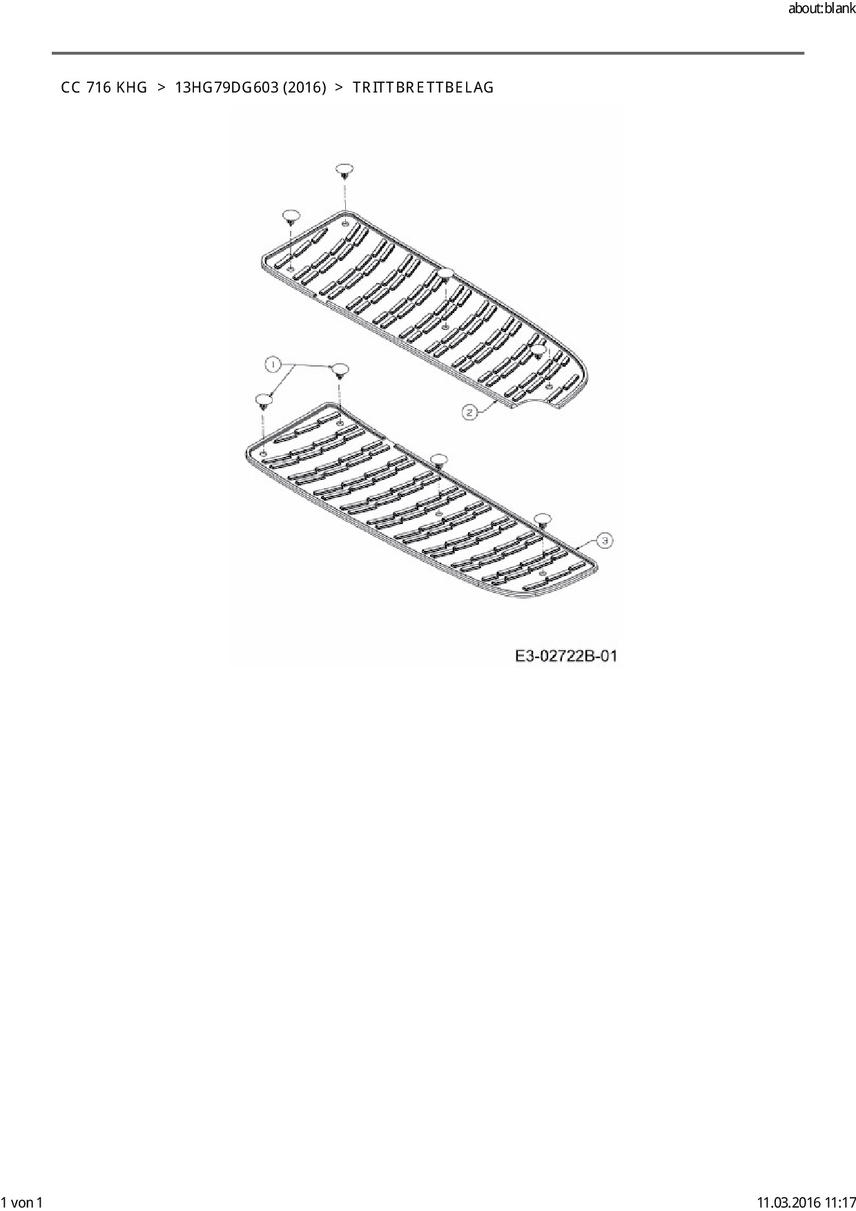 Ersatzteile für Rasentraktor Cub Cadet CC 716 KHG aus der Zeichnung Trittbrettbelag: