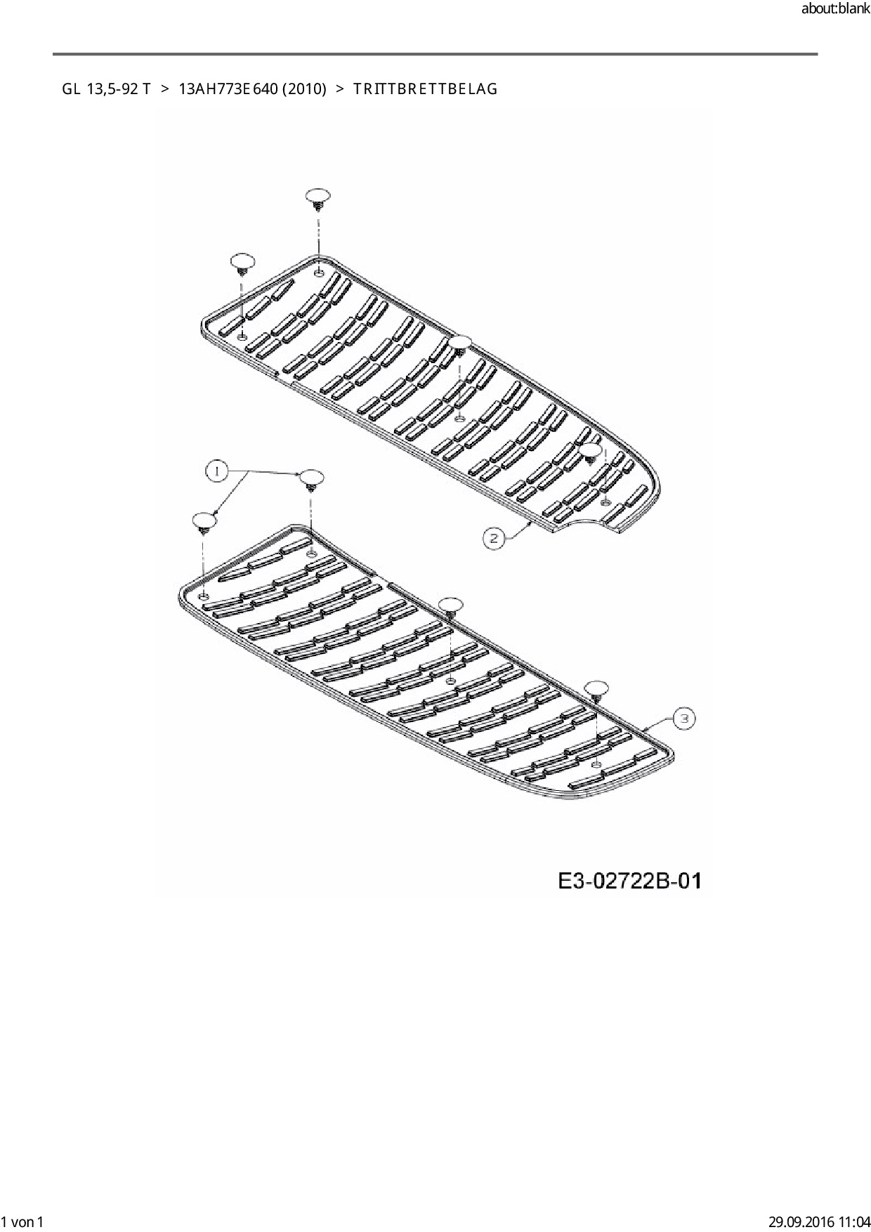 Ersatzteile für Rasentraktor Gartenland GL 13,5-92 T aus der Zeichnung Trittbrettbelag: