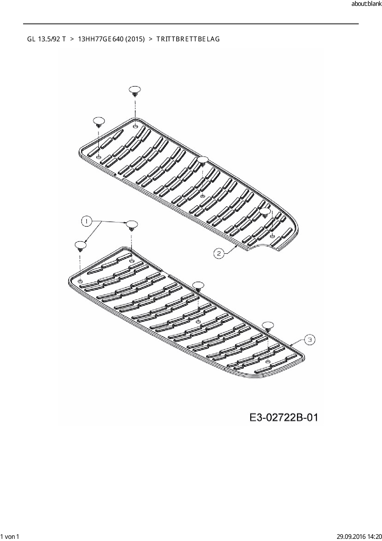 Ersatzteile für Rasentraktor Gartenland GL 13.5/92 T aus der Zeichnung Trittbrettbelag: