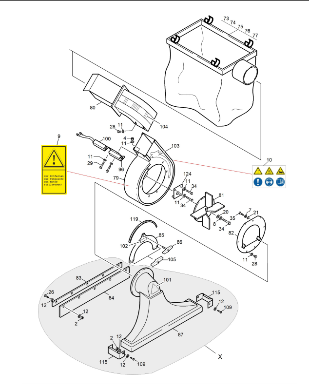 Zeichnung von Erco Laub- und Abfallsauger ES-400er Serie ES-400-04 Turbine, Gehäuse, Fangsäcke: