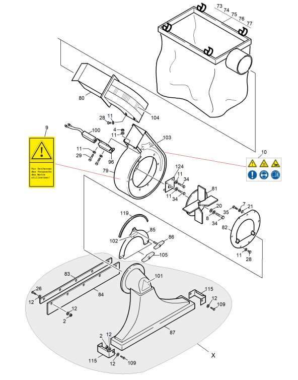 Zeichnung von Erco Laub- und Abfallsauger ES-400er Serie ES-400HOPRO-04 Turbine, Gehäuse, Fangsäcke:
