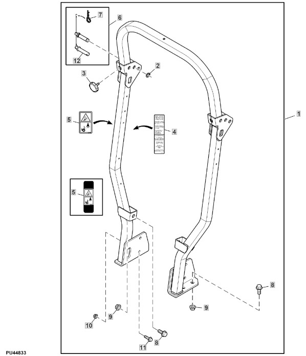 Folgende Ersatzteile für John Deere Rasentraktor X950R (PC11965) aus der Zeichnung Überschlagschutz (020001 - ) - ST762480 können Sie hier bestellen: