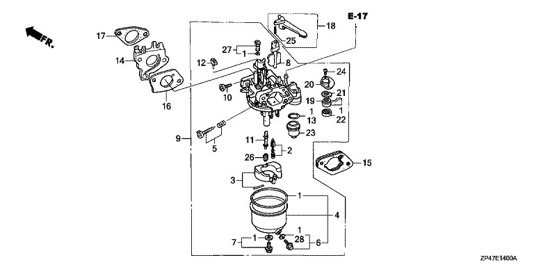 Ersatzteile für Honda Stromerzeuger ECT6500P2 GVWT (GVWT) Baugruppe VERGASER (1)