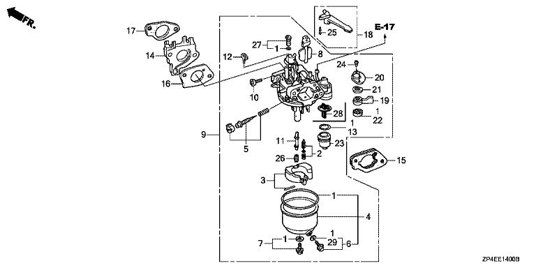 Ersatzteile für Honda Stromerzeuger ECT7000 GVWT (GVWT) Baugruppe VERGASER (1)