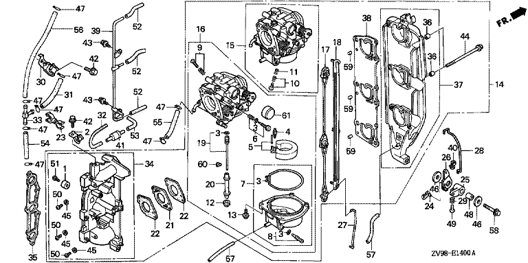Ersatzteile für Honda Außenbordmotoren BF30A1 LHSA (LHSA) Baugruppe VERGASER