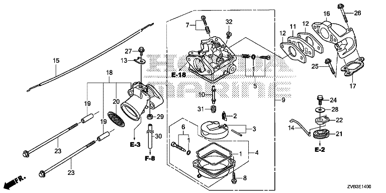 Ersatzteile für Honda Außenbordmotoren BF5DH LHNU (LHNU) Baugruppe VERGASER