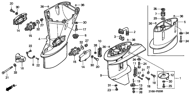 Ersatzteile für Honda Außenbordmotoren BF30A1 LHA (LHA) Baugruppe VERLAENGERUNGSGEHAEUSE