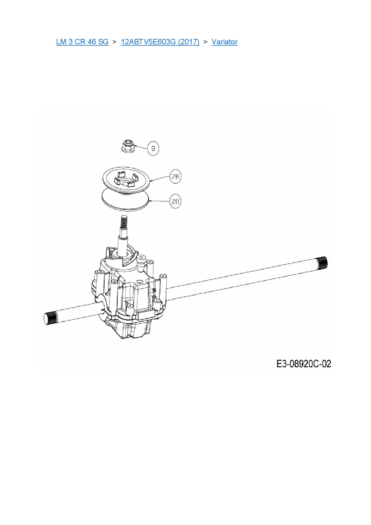 Ersatzteile für Motormäher mit Antrieb Cub Cadet LM 3 CR 46 SG aus der Zeichnung Variator: