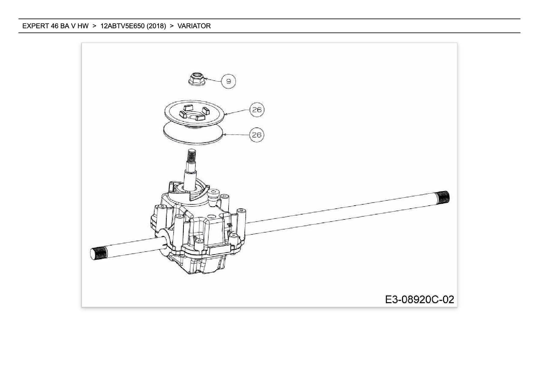 Ersatzteile für Motormäher mit Antrieb Wolf-Garten Expert EXPERT 46 BA V HW aus der Zeichnung Variator: