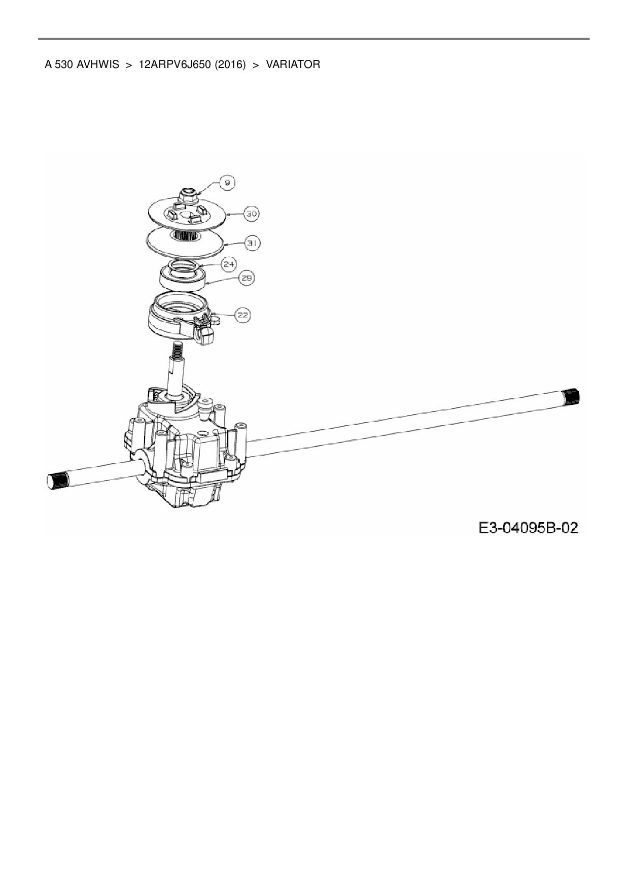 Ersatzteile für Motormäher mit Antrieb Wolf-Garten A 530 AVHWIS aus der Zeichnung Variator:
